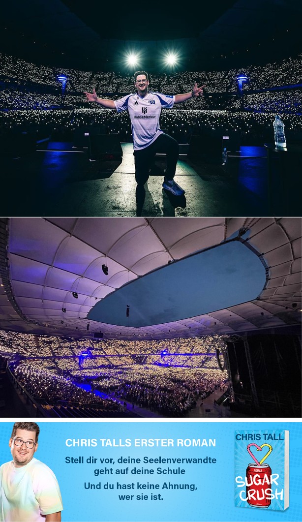 Da spielt er als Tabellenführer in der ersten Liga! Und die Sache mit dem Stadion klappte auch, denn am 7. Juni 2025 trat Chris Tall genau dort auf, wo der HSV zu Hause ist: im Hamburger Volksparkstadion. WAS FÜR EINE FULMINANTER ABEND! 🫶